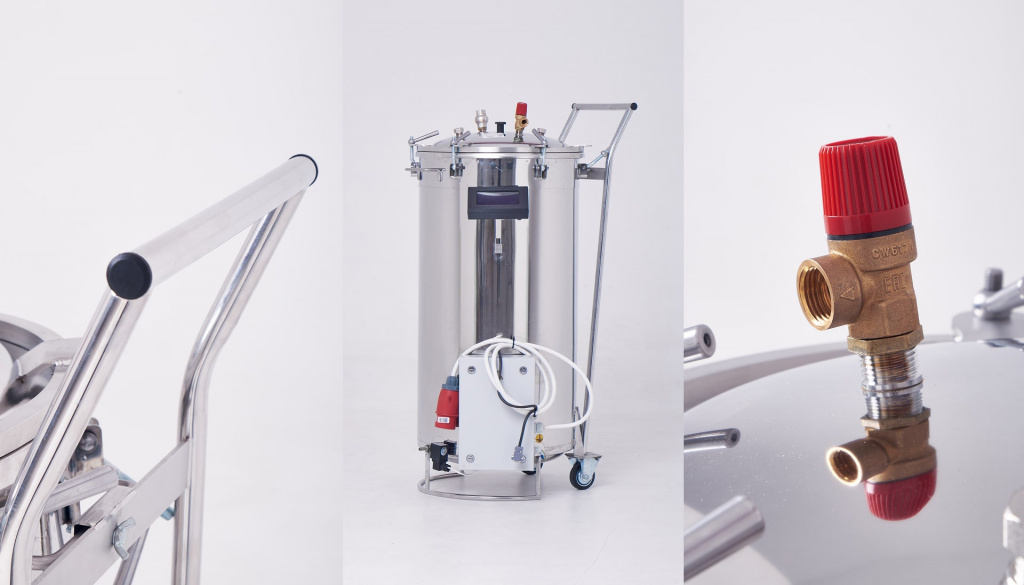 Корпус изготовлен из пищевой нержавеющей стали AISI 304. Этот сплав устойчив к коррозии, не вступает в реакцию с продуктами и легко очищается. Толщина стенок обеспечивает прочность, надёжность и долговечность прибора. Благодаря качественным материалам автоклав сохраняет презентабельный вид даже после многих лет активной эксплуатации.